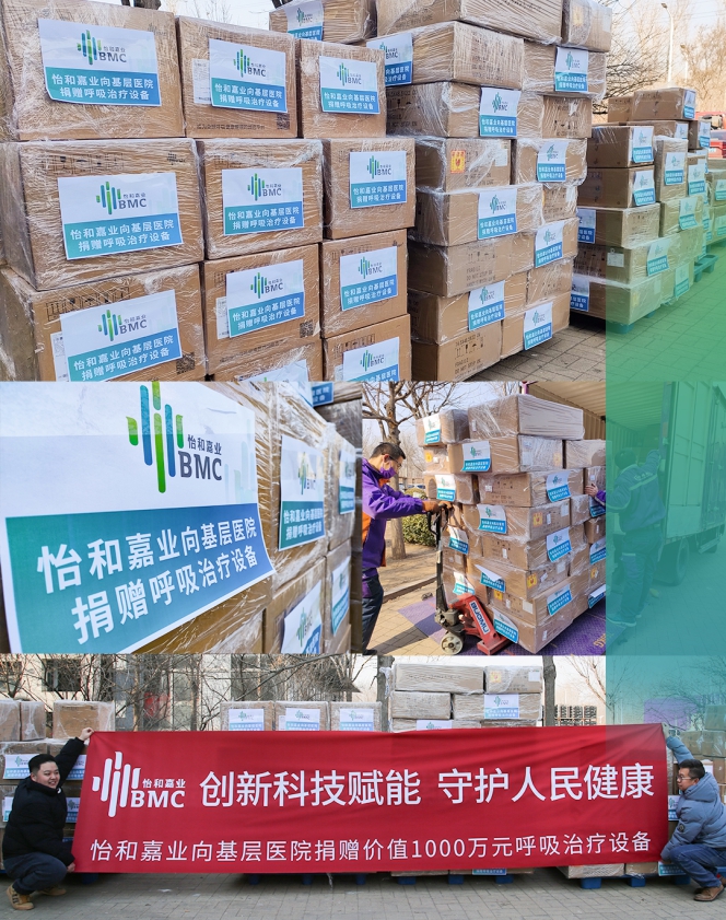 2023年2月,在国家工业和信息化部的指导下,怡和嘉业向河北、河南、江西、四川、西藏等地100多家县乡级医疗机构捐赠了价值1000万元的呼吸治疗设备,为推动优质医疗资源下沉、提升基层医疗服务水平提供企业力量。